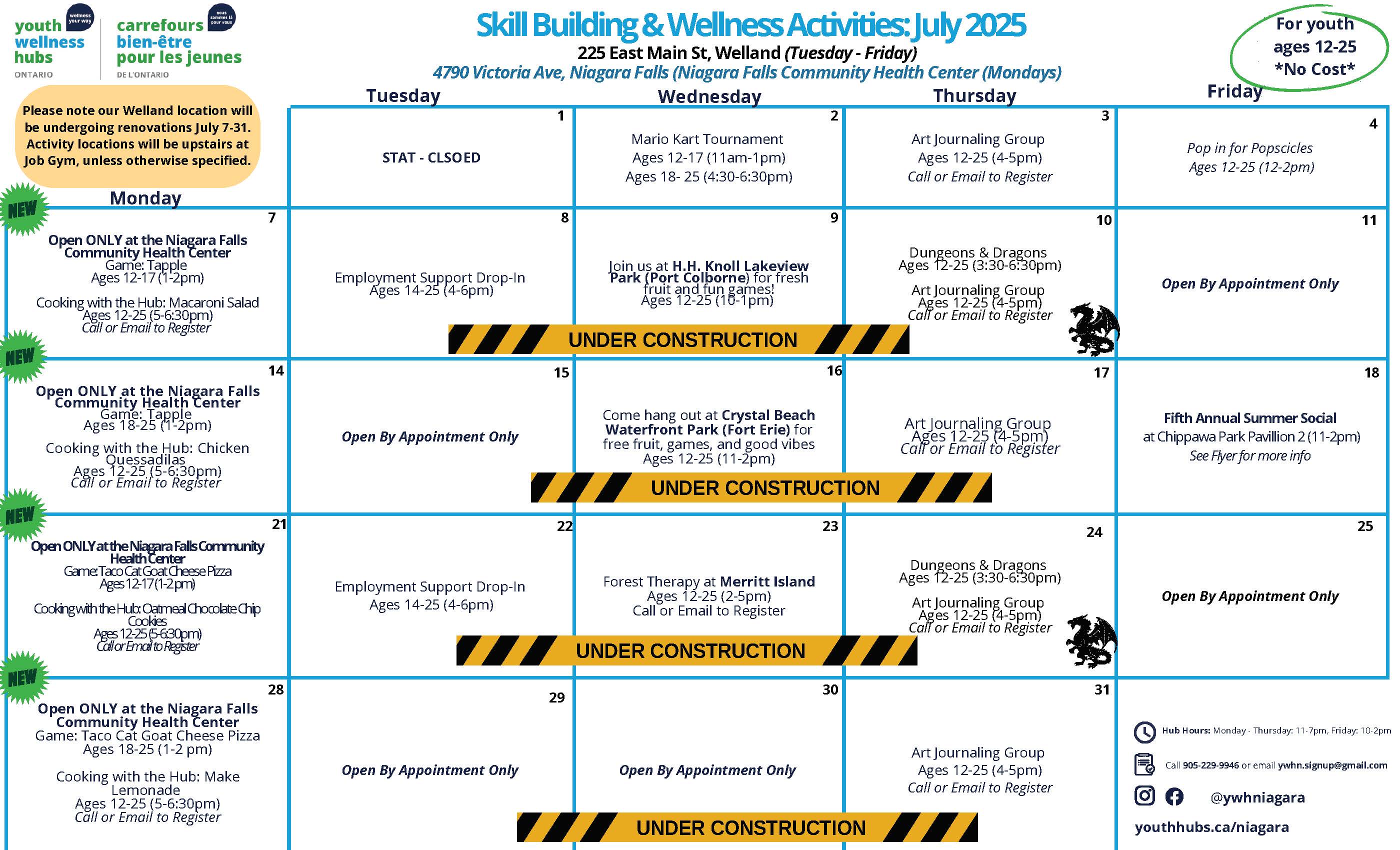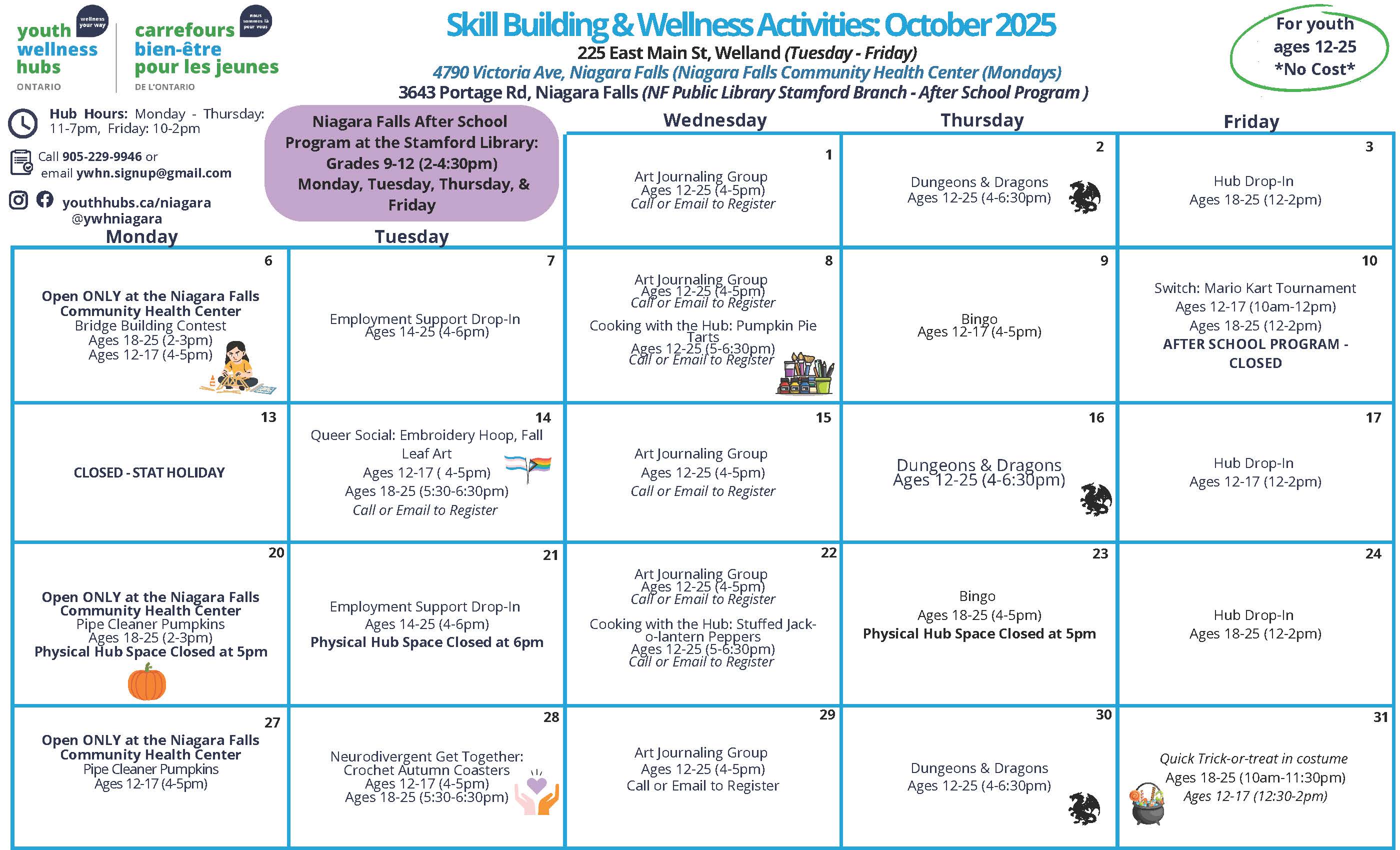 Learn more about the Youth Wellness Hub Niagara Region on social media:
